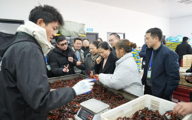 与会嘉宾参观小龙虾集散中心。宜宾市农科院供图