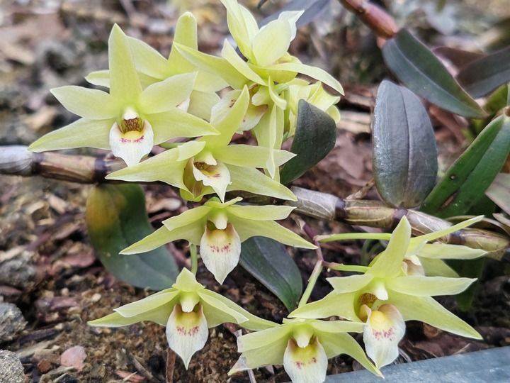 在新宁县黄背村,记者看到,仿野生铁皮石斛种植基地的崀山崖壁上,一簇簇铁皮石斛花依附在崖壁表层,根茎紧贴着崖壁,仿佛在聆听大自然的心跳。